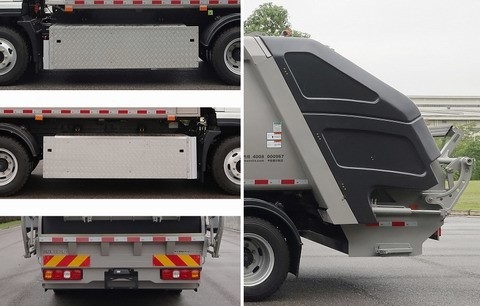 Ciężarówka przyjmuje podwozie o rozstawie osi 3800 mm; pojazd realizuje funkcje zbierania śmieci, załadunku i transportu poprzez kosze na śmieci, mechanizmy karmienia, wypełniacze,systemy hydrauliczne, oraz układy sterowania elektrycznym; Ta ciężarówka ma trzy konfiguracje: A (typ wiadra przesuwanego), B (typ wiadra przesuwanego) i C (typ wiadra przesuwanego).pojemność ładunkowa 3150 kg (dla 3 osób), a nominalna pojemność ładunkowa wynosi 3215kg (dla 2 osób); przy konfiguracji C masa przyczepy wynosi 9250kg, nominalna pojemność ładunkowa wynosi 3050kg (dla 3 osób),a nominalna pojemność ładunkowa wynosi 3115 kg (dla 2 osób), tylne przedłużenie wynosi 360 mm, a całkowita długość pojazdu wynosi 7805 mm; przy konfiguracji B tylne przedłużenie wynosi 70 mm, a całkowita długość pojazdu wynosi 7515 mm; przy konfiguracji Ctylne przedłużenie wynosi 325 mm, a całkowita długość pojazdu wynosi 7770 mm; pojazd może być opcjonalnie wyposażony w urządzenie do przewracania wiadra, lewy i prawy ramię kołyskowy, tylną prawą skrzynkę sterującą,tylna tablica zatrzymania, częściowy wygląd ochrony bocznej, niższy wygląd tylnego wypełniacza, wygląd lewej i prawej tylnej dolnej foteliki butli olejowej,wygląd płyty wiadra poduszkowego tylnego mechanizmu zasilającego, wygląd tylnej części bez płyty odbiornego materiału, wygląd ramienia podtrzymującego, wygląd prawej górnej przedniej części, wygląd zabezpieczenia lewej strony,wygląd lewej bez przełącznika, wygląd małego pudełka w środku po prawej stronie, wygląd górnej części wypełniacza i wygląd okładki dekoracyjnej po stronie tylnego wypełniacza;Materiał urządzenia ochronnego bocznego pojazdu to stop aluminium, przy czym metodą podłączenia jest podłączenie śrubą; tylna ochrona zastępuje się urządzeniem roboczym o odległości od ziemi 480 mm;Rodzaj urządzenia magazynowania energii/Model urządzenia magazynowania energii/Wytwórca urządzenia magazynowania energii/Model zespołu urządzenia magazynowania energii/Wytwórca zespołu urządzenia magazynowania energii: Akumulator fosforanu żelaza litu/CB260/Ningde Times New Energy Technology Co., Ltd./L150TX8/Ningde Times New Energy Technology Co., Ltd; opcjonalne urządzenie do magazynowania energii,rodzaj jednostki urządzenia magazynowania energii/model jednostki urządzenia magazynowania energii/producent jednostki urządzenia magazynowania energii/model zespołu urządzenia magazynowania energii/producent zespołu urządzenia magazynowania energii: Akumulator fosforanu żelaza litu/L173F305/China Innovation Aviation Technology Co., Ltd./D173F305-1P33S, D173F305-1P72S/China Innovation Aviation Technology Co., Ltd;Rodzaj urządzenia magazynowania energii/Model urządzenia magazynowania energii/Wytwórca urządzenia magazynowania energii/Model zespołu urządzenia magazynowania energii/Wytwórca zespołu urządzenia magazynowania energii: Akumulator fosforanu żelaza litu/CB240/Ningde Times New Energy Technology Co., Ltd./L302H01, L302C01/Ningde Times New Energy Technology Co., Ltd;Typ silnika napędowego jest silnikiem synchronicznym z magnesem stałym, model TZ365XSC12, moc znamionowa 105kw, moc szczytowa 160kw; wyposażony w ABS na podwoziu, model systemu ABS: CM4XL-4S/4M, przedsiębiorstwo produkcyjne: Guangzhou Ruili Kemi Automotive Electronics Co.,Ltd.; opcjonalne bezpośrednie zasilanie ETC urządzenie pokładowe; pojazd wyposażony jest w rejestrator jazdy z funkcją pozycjonowania satelitarnego